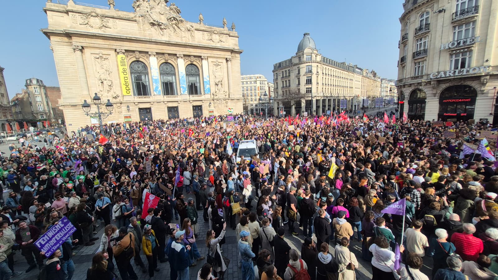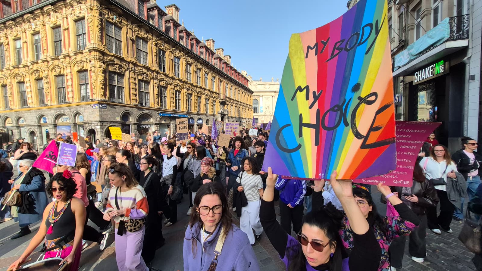 Publié le 8 mars 2026Jamais on n’avait vu autant de monde à Lille pour une manifestation en faveur des droits des femmes ! Dimanche 8 mars, Journée internationale pour les droits des femmes, des milliers de personnes se sont réunies place du Théâtre avant de défiler avec pancartes créatives, groupes de musique et détermination. Les inégalités au travail, de salaire, les violences intra-familiales ou dans la rue, les plafonds de verre qui se maintiennent, le droit à l’avortement de plus en plus menacé et les masculinistes toujours plus virulents... Les combats pour les droits de toutes les femmes sont aussi nombreux qu’essentiels et le sénateur Alexandre Basquin en a fait une de ses priorités.